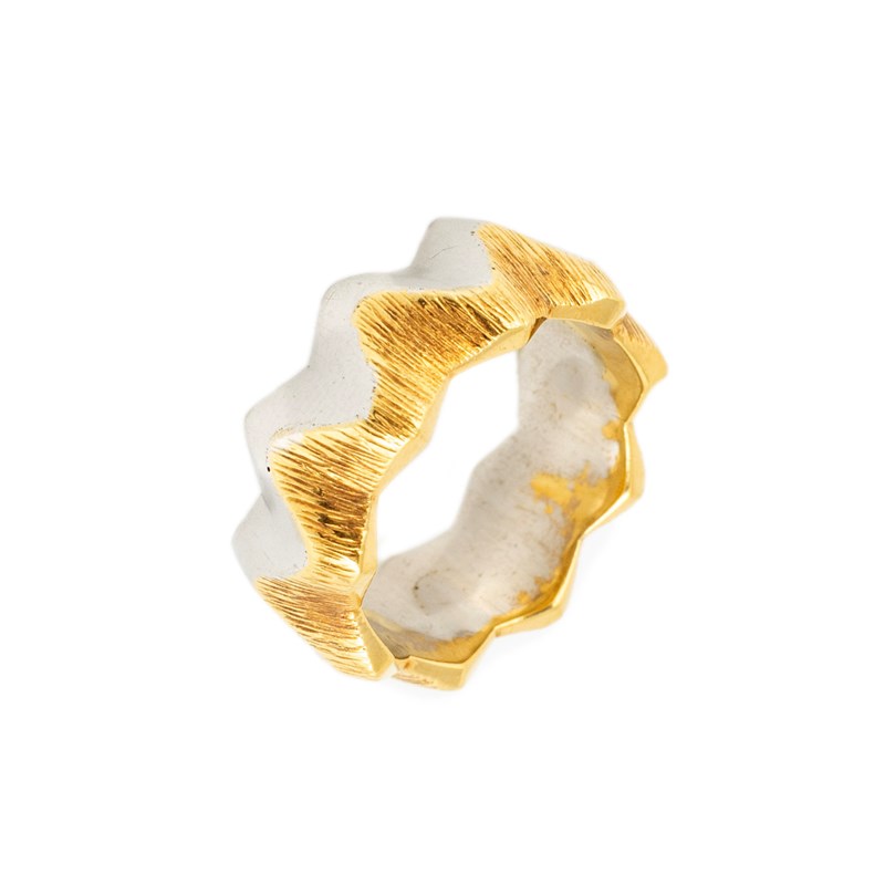 By Stuart Devlin, a modern 18-carat two-colour gold wavy pattern ring,