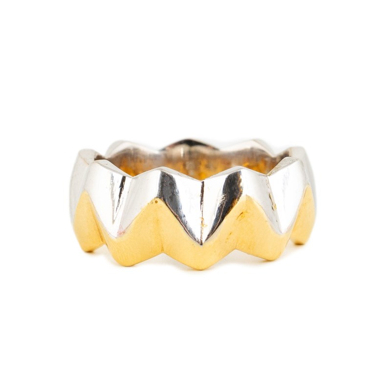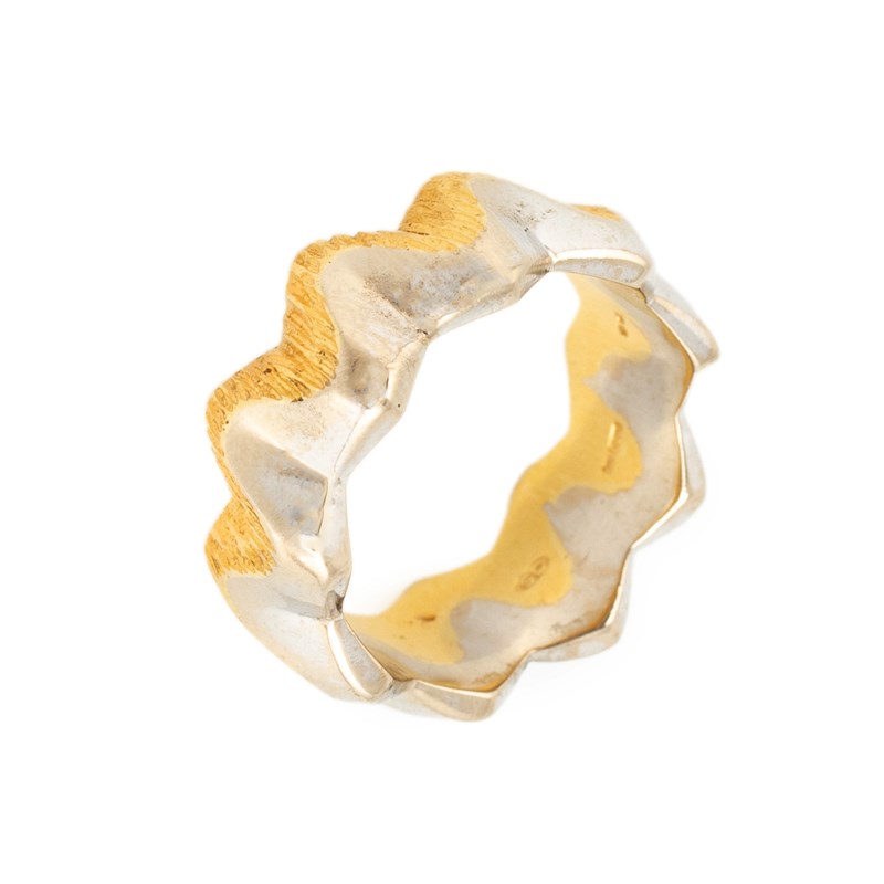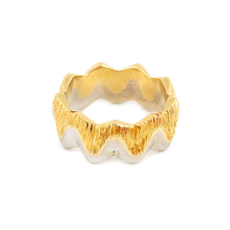 By Stuart Devlin, a modern 18-carat two-colour gold wavy pattern ring,