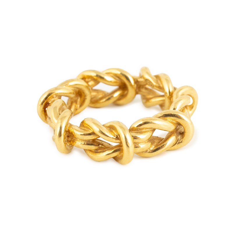 By Stuart Devlin, a modern 18-carat gold reef knot ring,