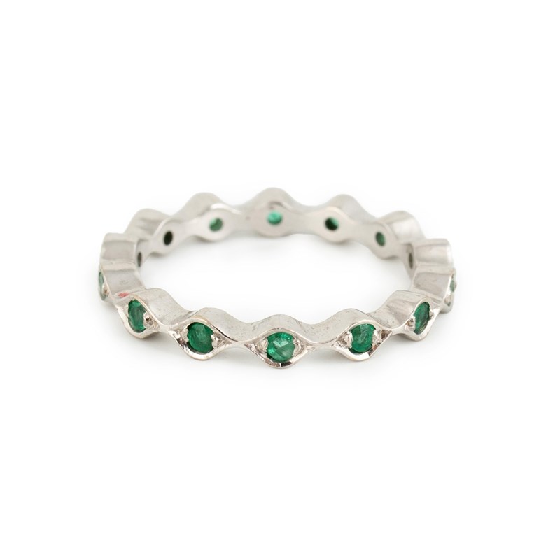 By Stuart Devlin, a modern 18-carat white gold and emerald ring,