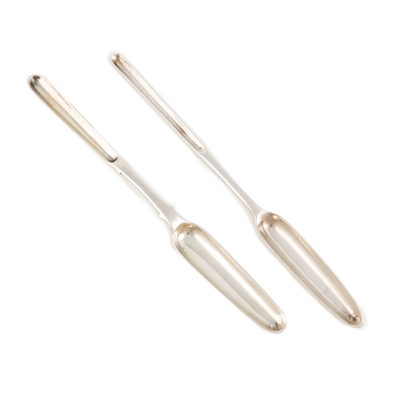 conventional form, plus another George III provincial silver Fiddle pattern marrow scoop, by Barber and Whitwell, York 1819, approx. total weight 3.5oz. (2)