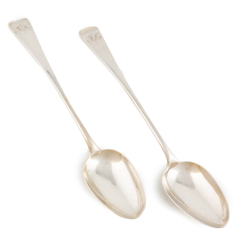 A pair of George III provincial silver Old English pattern basting spoons,