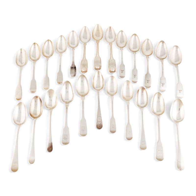 A collection of twenty-four late-18th century/early-19th century provincial silver dessert spoons,