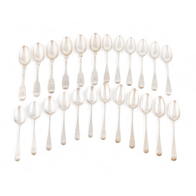 A collection of four sets of six provincial silver teaspoons,