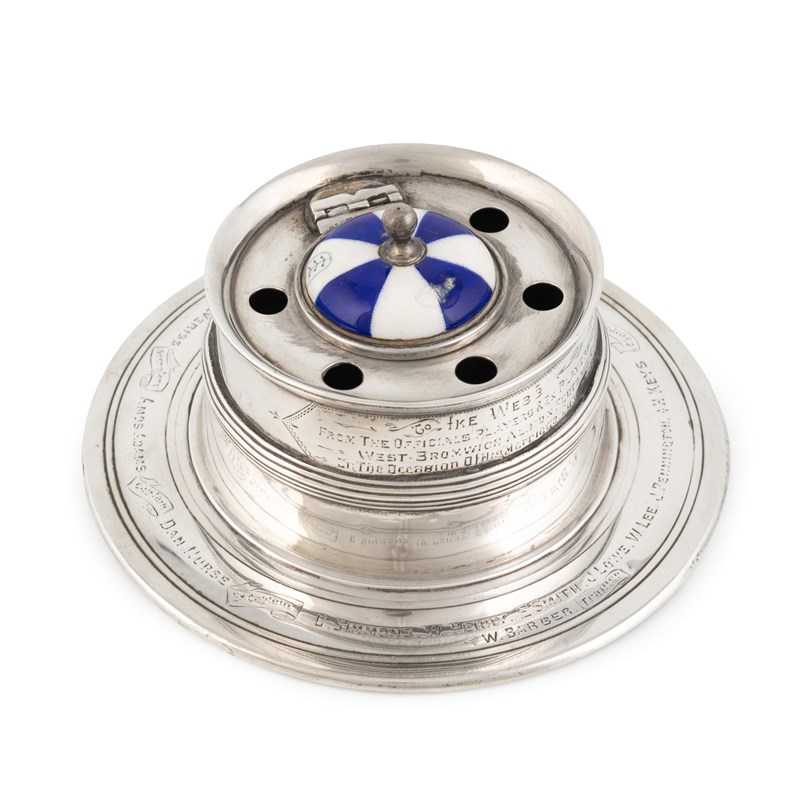 West Bromwich Albion Football Club, an Edwardian presentation silver and enamel inkwell,
