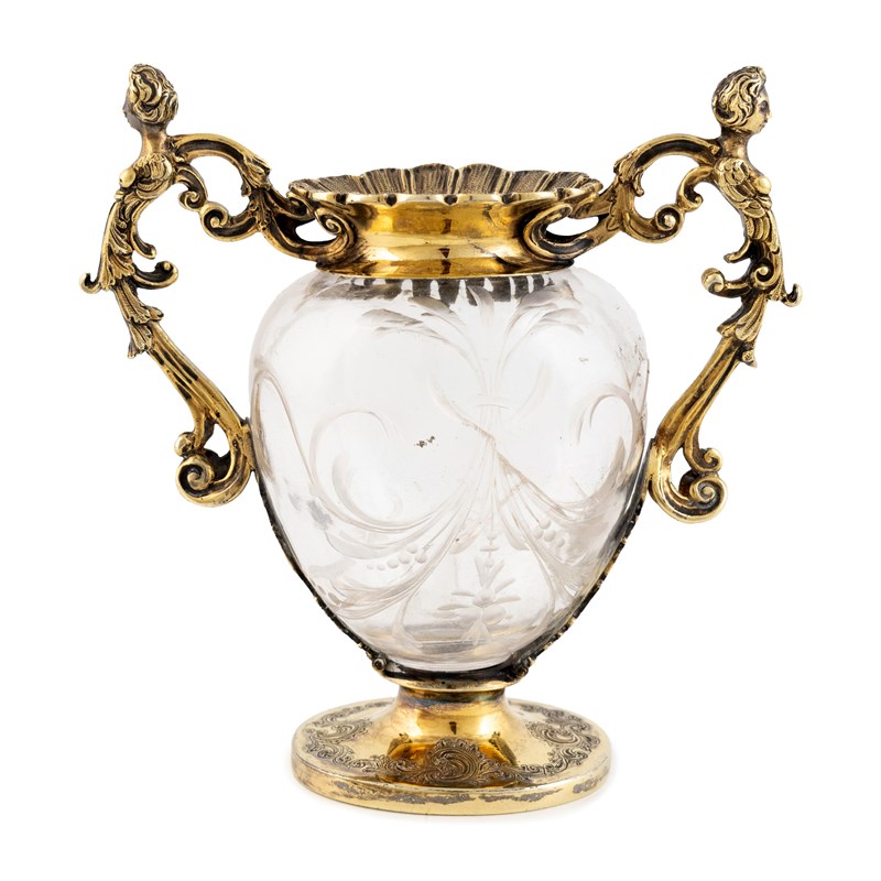 A Victorian two-handled silver-gilt and rock crystal vase,