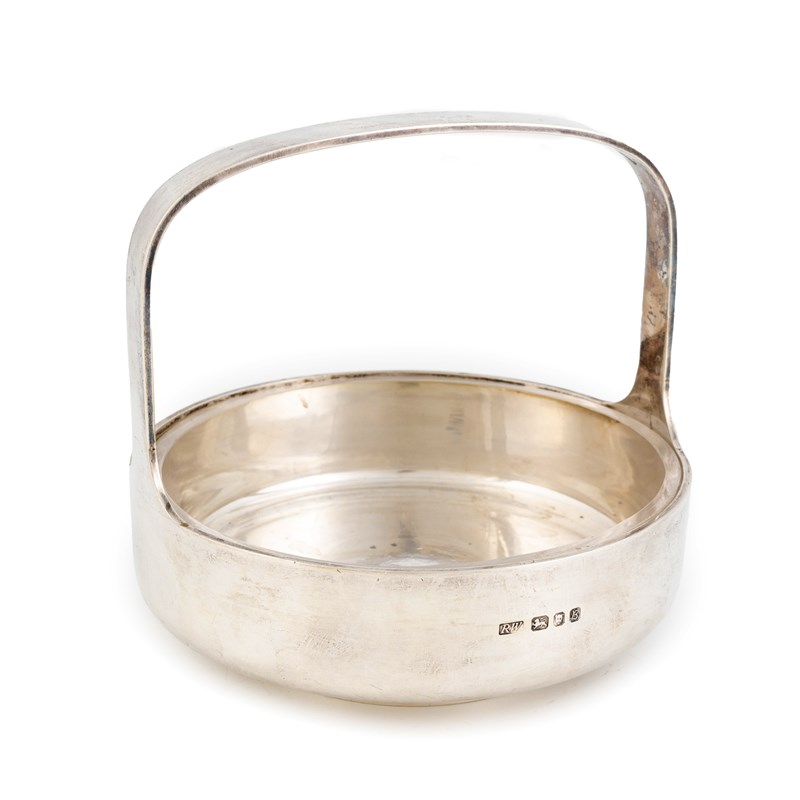 circular form, plain handle, clear glass liner, diameter 13cm, approx. weight 10oz.
