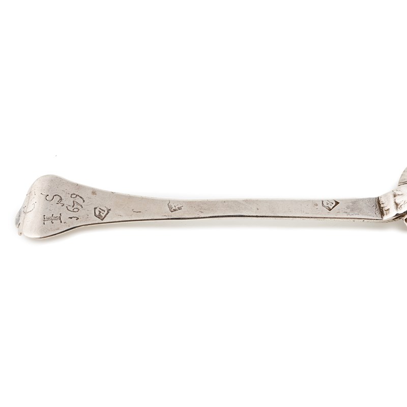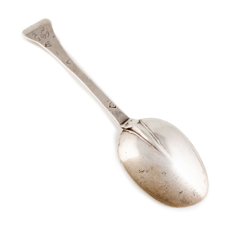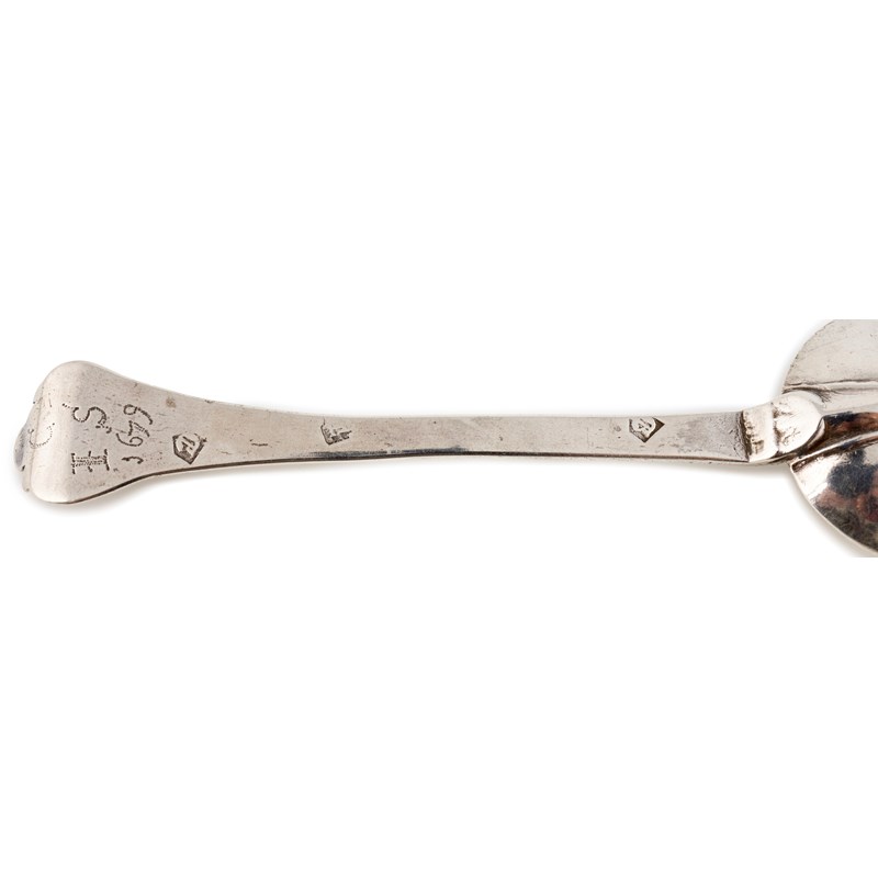 the reverse of the oval bowl with a plain rat-tail, the reverse of the terminal with prick-dot initials 'C' over 'IS' over '1679', length 19cm, approx. weight 1.5oz.
