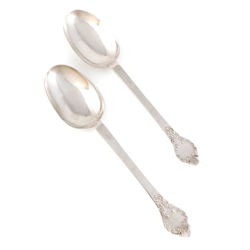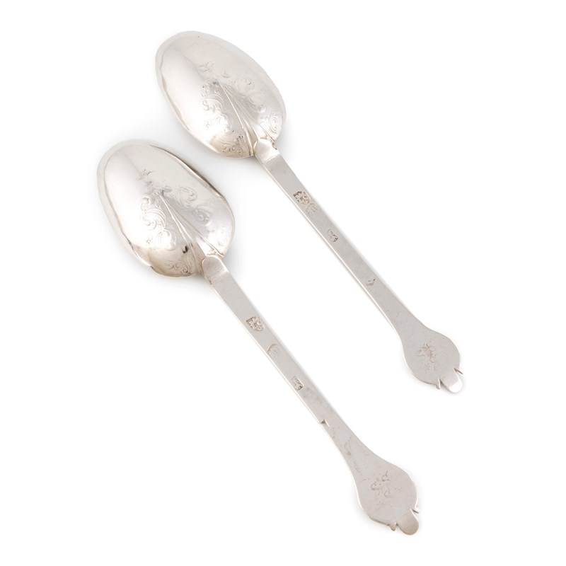 A pair of Charles II silver Lace-back Trefid spoons,