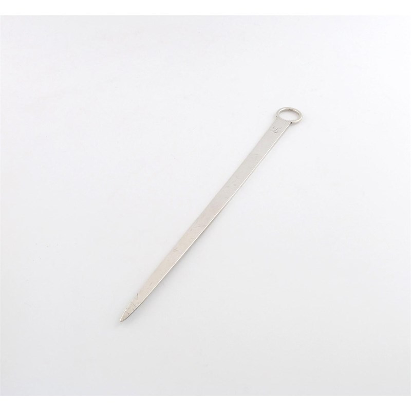 tapering circular form, plain ring handle, with a script initial, length 28cm, approx. weight 2oz.
