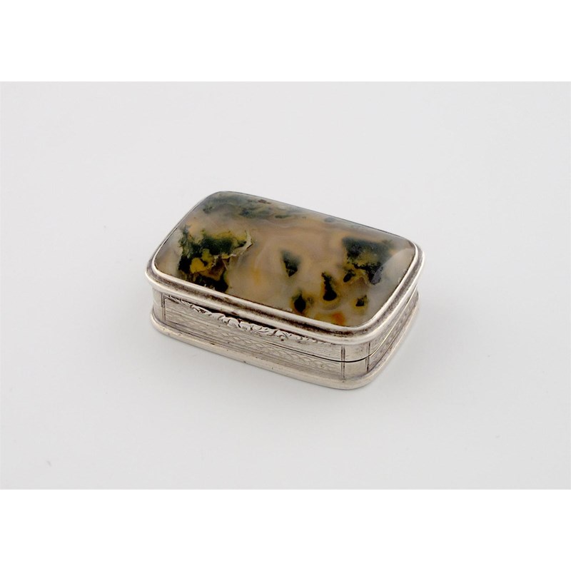 An early 19th century silver mounted moss agate vinaigrette