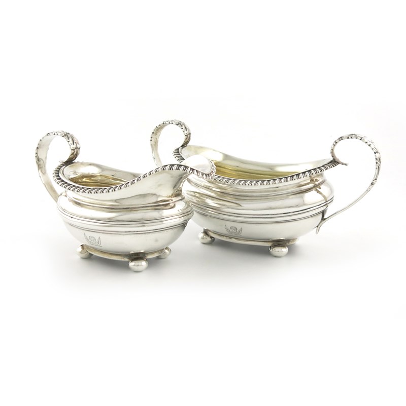 A George III silver cream jug and sugar bowl