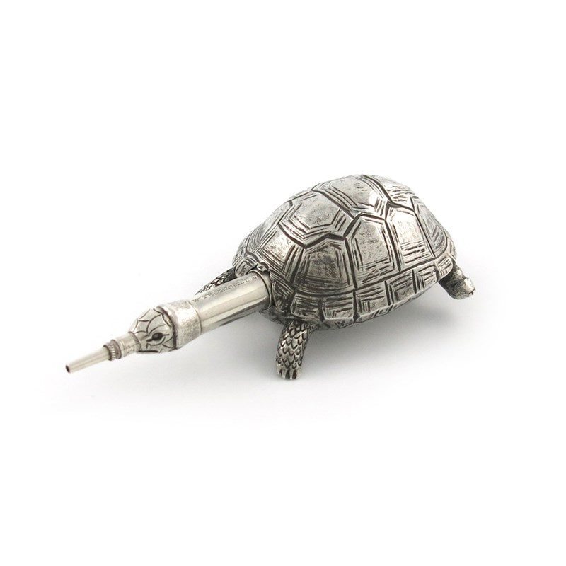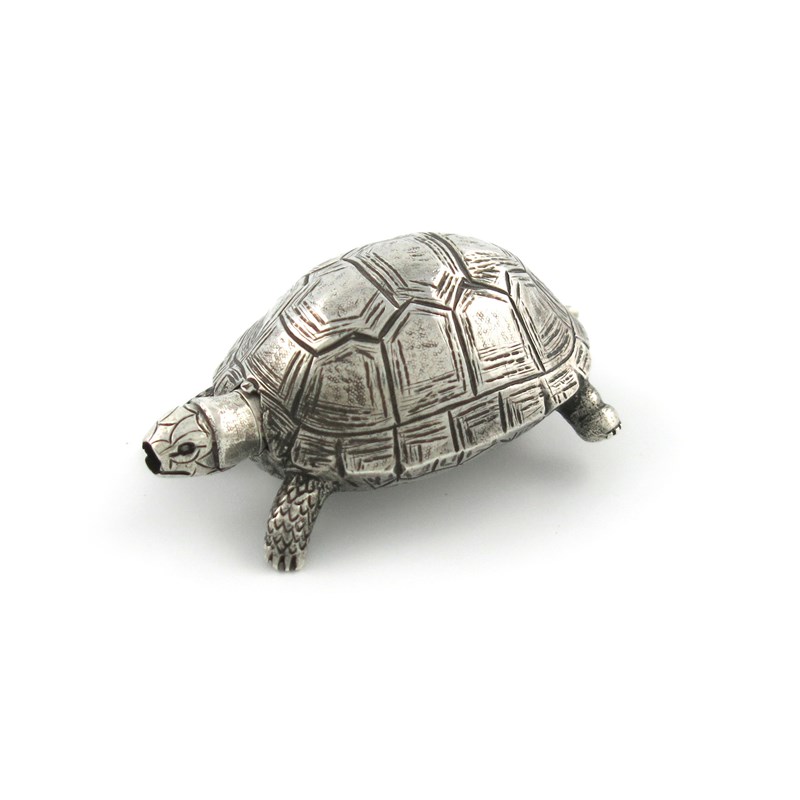 modelled as tortoise, with a ring attachment, length closed 4.5cm.