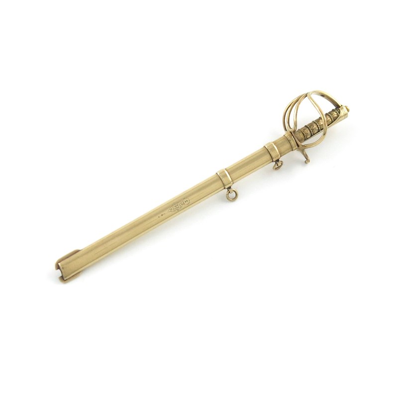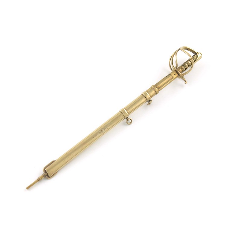 modelled as an officer's sword, with a four-bar hilt, and scabbard, with two ring attachments, length 13.2cm.