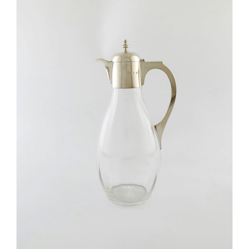 baluster form, plain silver mount with a scroll handle and domed cover with a knop finial, height 27.5cm.