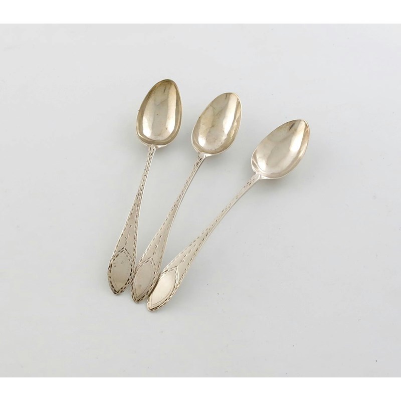 A set of three George III Scottish provincial silver Bright-cut Celtic Point pattern teaspoons