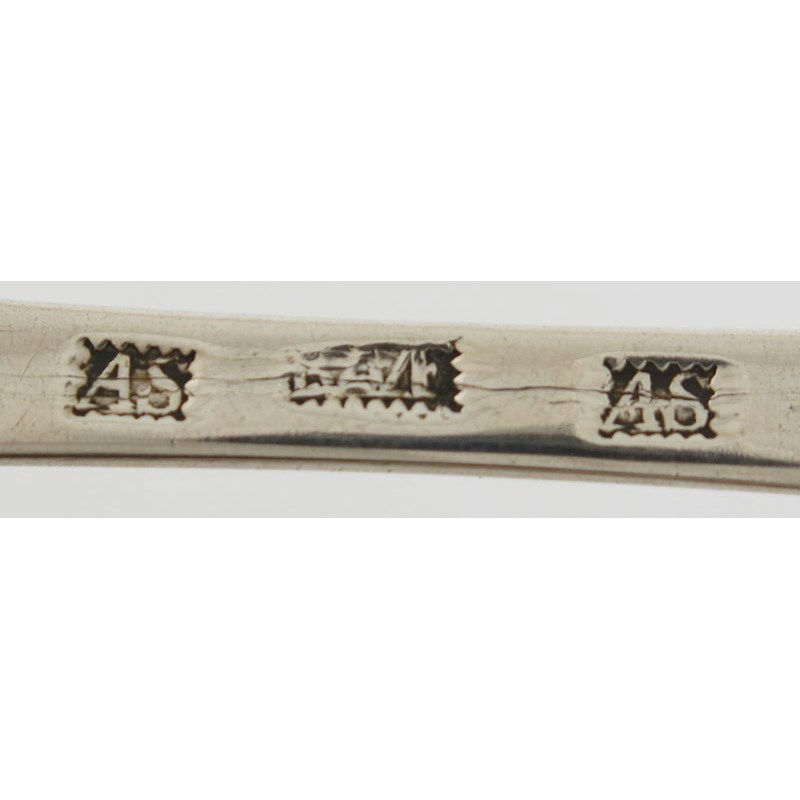 the reverse of the terminal with a worn crest and motto, the reverse of the bowl with a plain heel, length 21cm, approx. weight 2.2oz.