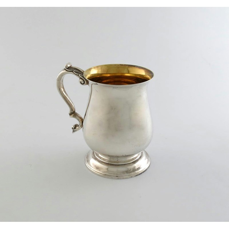 baluster form, gilded interior, leaf capped scroll handles, on a circular foot, height 13.5cm, approx. weight 11.5oz.