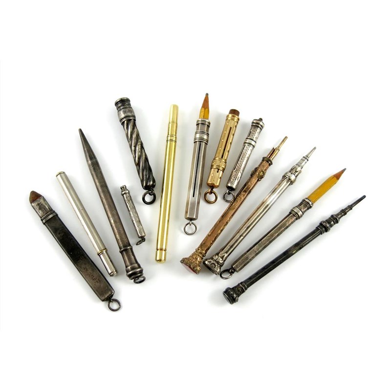 A small collection of silver, silver-gilt and gilt metal pencils,