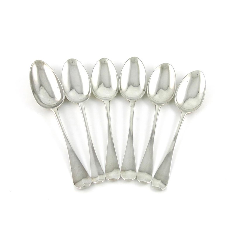 A collection of six 18th century silver Hanoverian pattern tablespoons