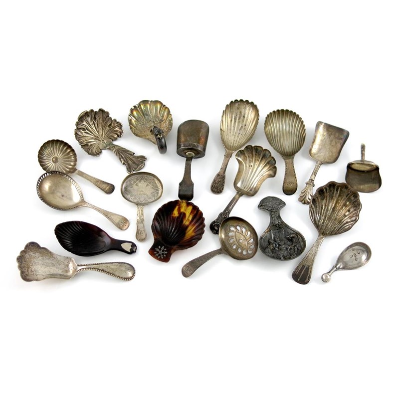 λA collection of silver caddy spoons