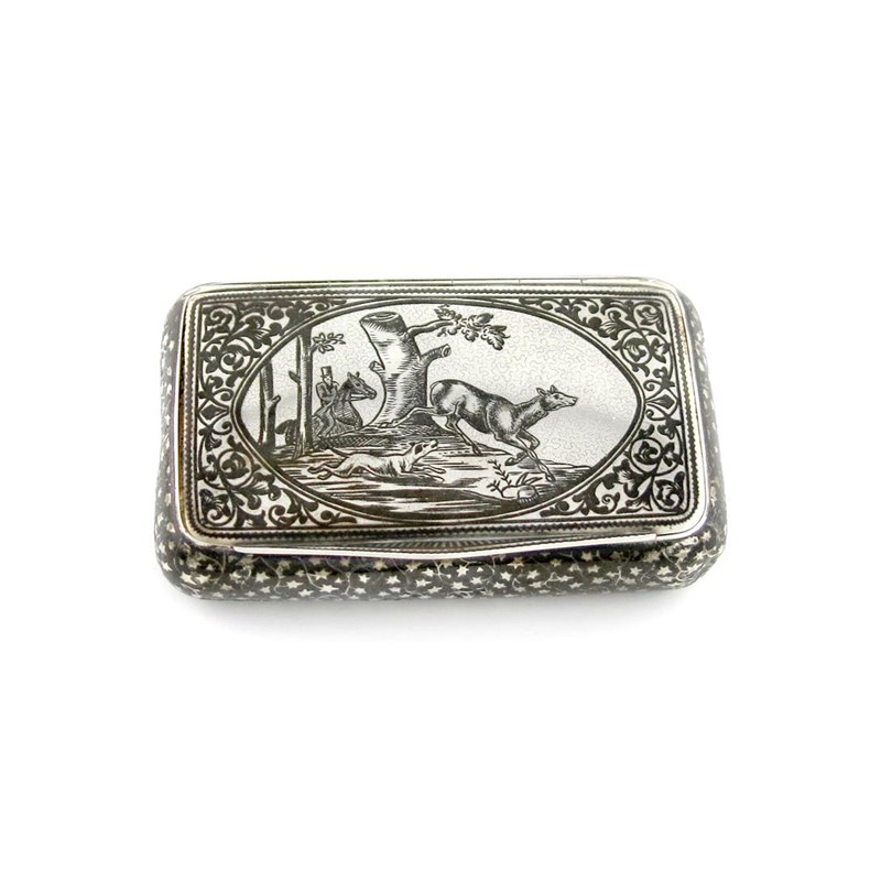 A 19th century Austro-Hungarian silver and niello work snuff box