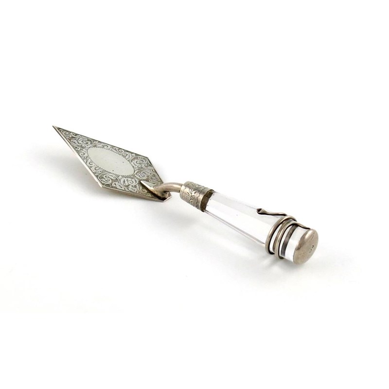 triangular blade, engraved decoration, faceted tapering handle applied with a snake, length 15.5cm.