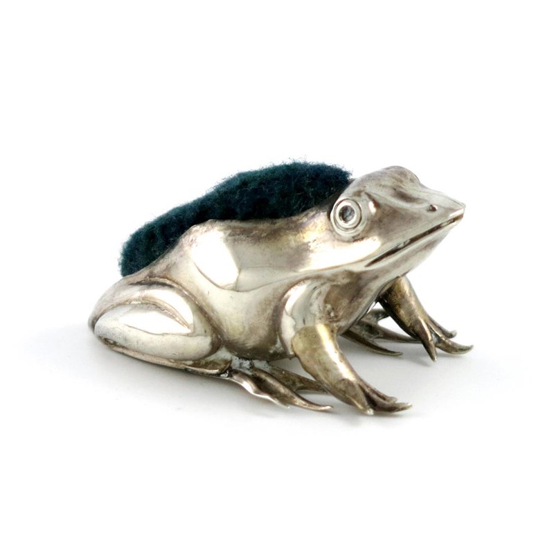 An Edwardian novelty silver frog pin cushion,