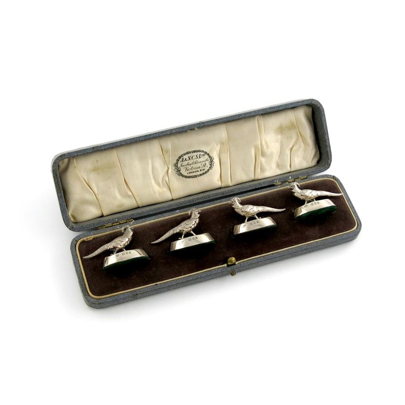 modelled as Chinese pheasants, in a fitted case.