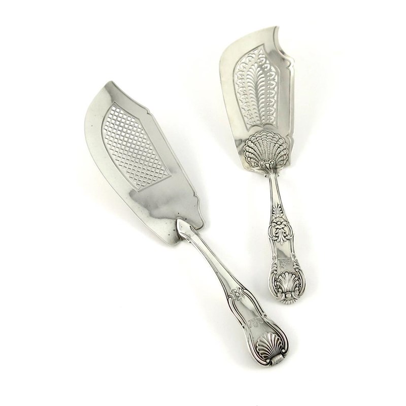by Eley, Fearn and Chawner, London 1809, the terminal with a crest, plus a Queen's pattern fish slice, by Jonathan Hayne, London 1827, the blade with pierced decoration and an oyster shell, the terminal crested, approx. total weight 12.9oz. (2)