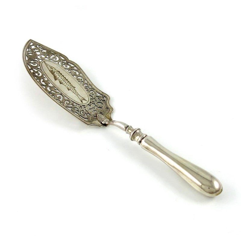 the blade with pierced and engraved foliate scroll decoration and engraved with a sturgeon, plain handle, length 31cm.