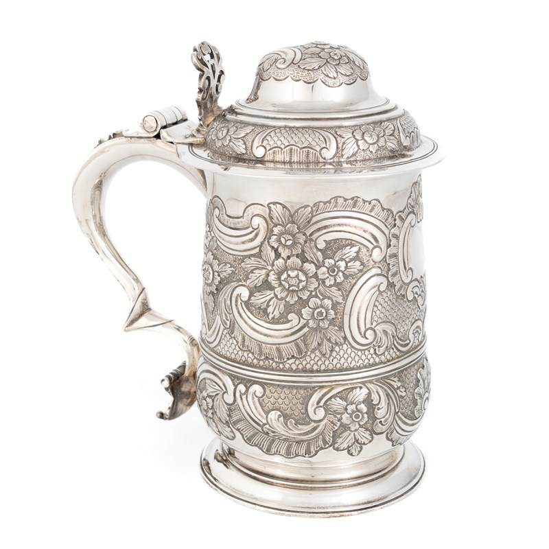 baluster form, later chased foliate scroll decoration, domed hinged cover with a pierced thumb-piece, on a circular foot, height 2ocm, approx. weight 27oz.