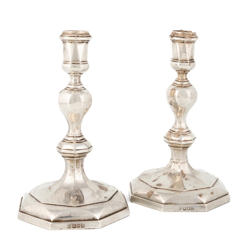 in the Queen Anne manner, baluster columns, on raised octagonal bases, height 17.5cm. (2)