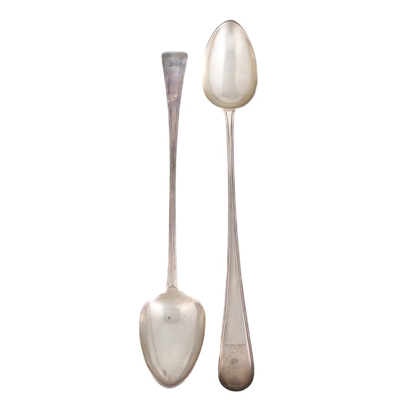 A pair of George III provincial silver Old English Thread pattern basting spoons,