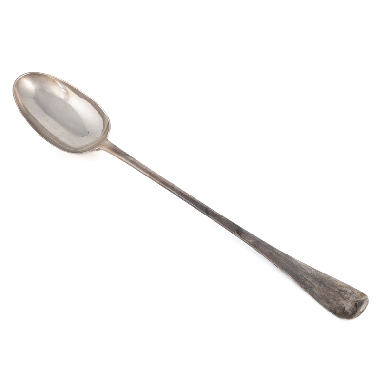 A large Queen Anne silver Hanoverian pattern basting spoon,