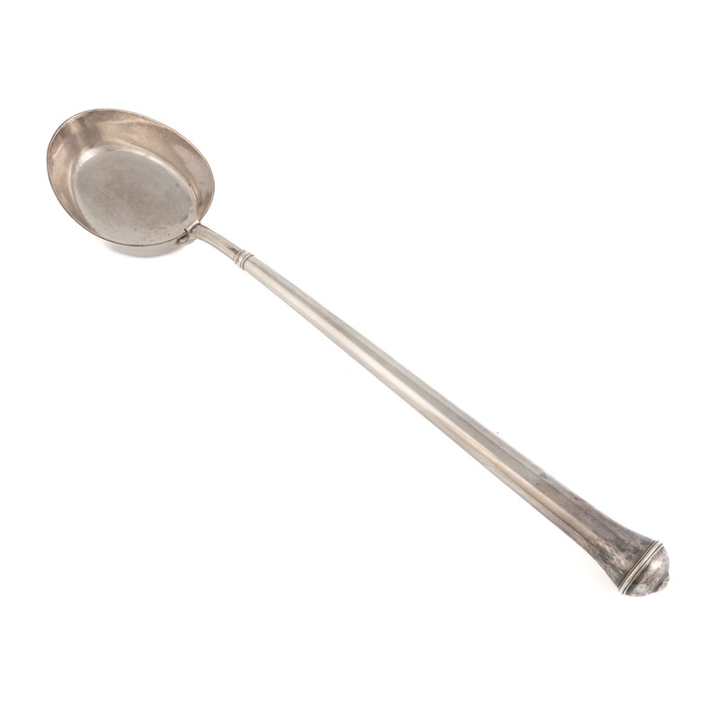A George II provincial silver canon-handled basting spoon,