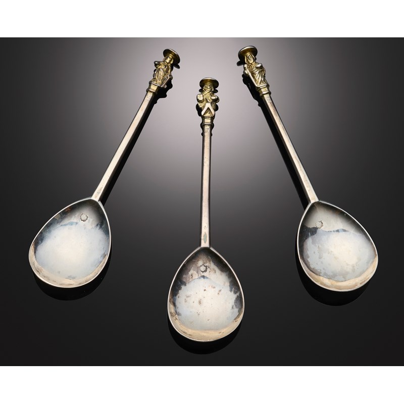 A set of three James I Apostle spoons, St. Peter, St. Andrew and St. James the Greater,