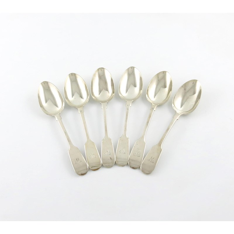 A set of six Victorian silver Fiddle pattern dessert spoons