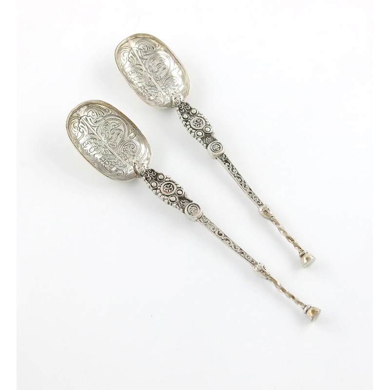 oval bowls, scroll decoration, length 20.3cm, approx. weight 4.2oz. (2)