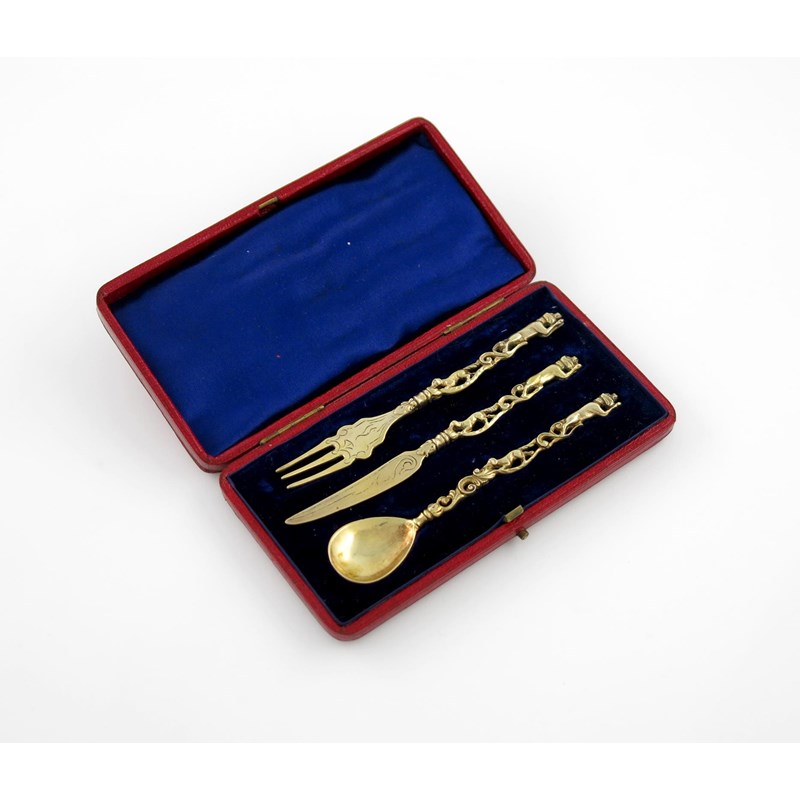 A late-19th century German silver three-piece christening set