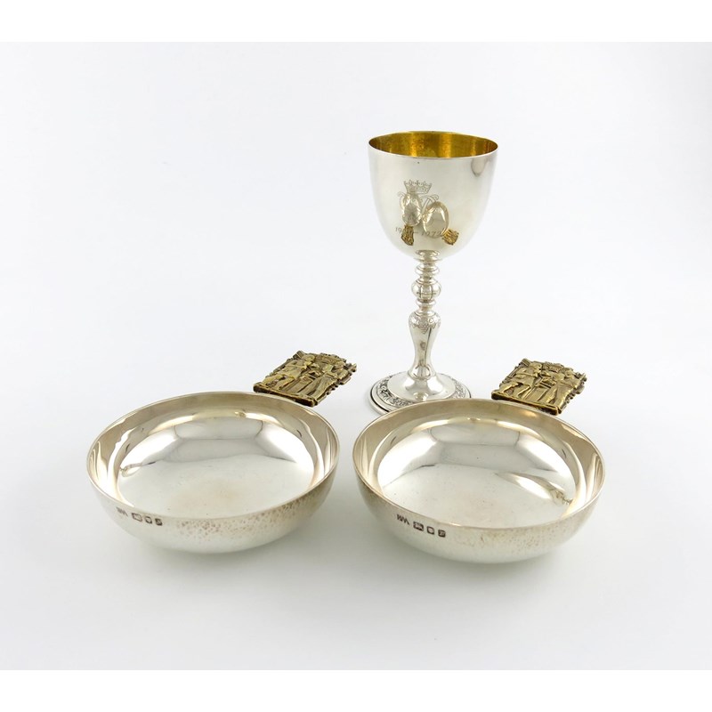 By Hector Miller for Aurum, two parcel-gilt silver commemorative quaiches,