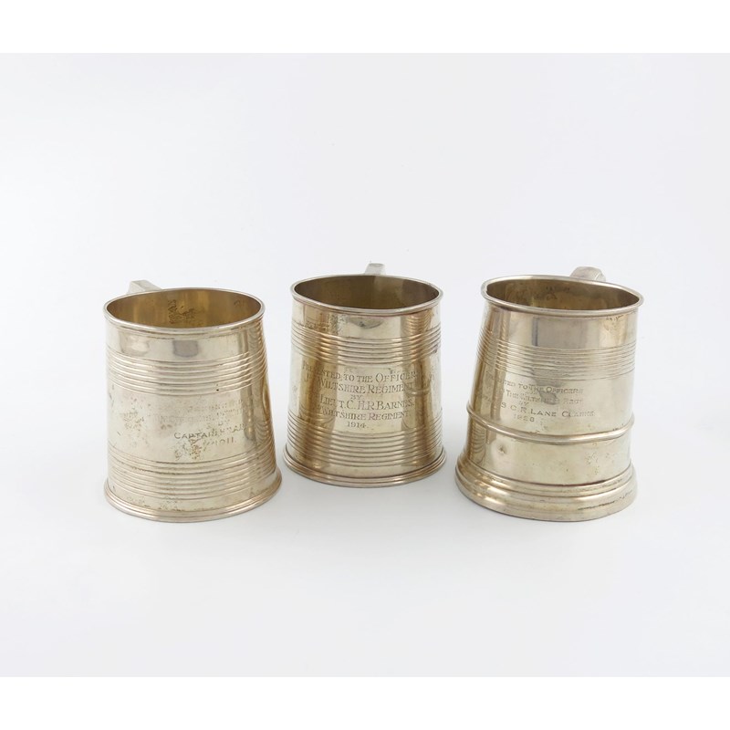 Three regimental silver mugs