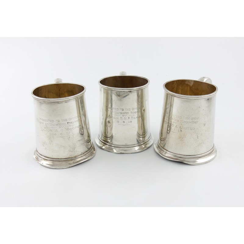 Three regimental silver mugs,
