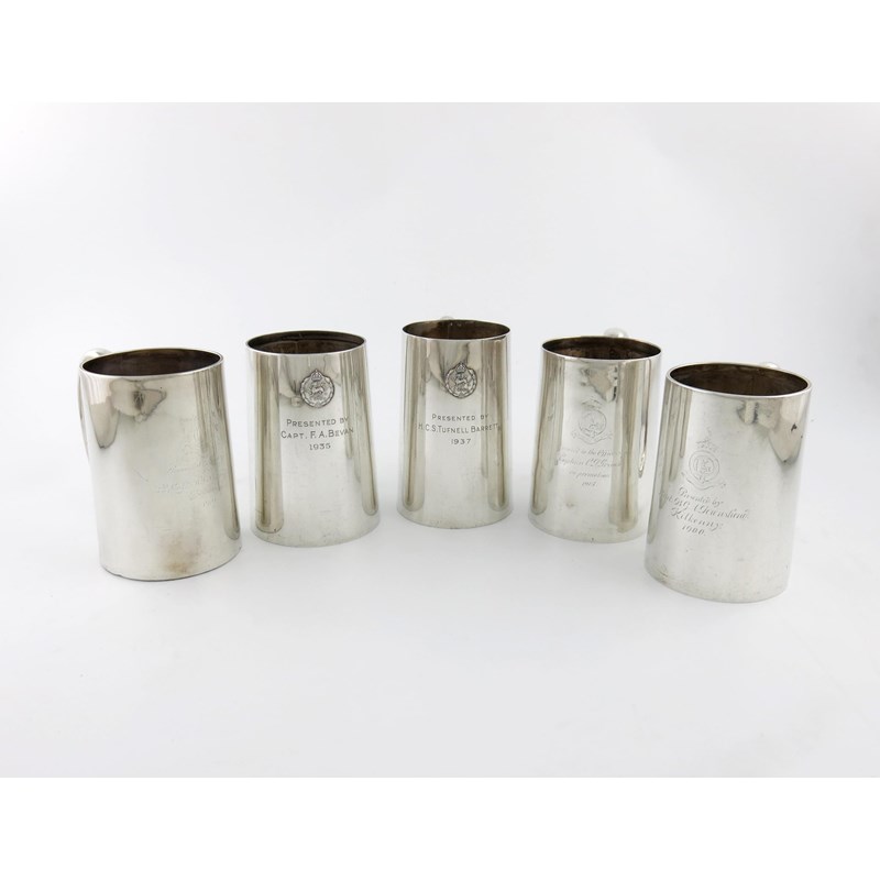 Five regimental silver mugs,