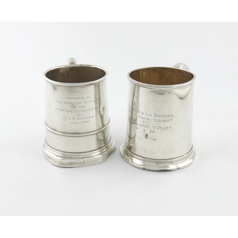 Two regimental silver mugs,
