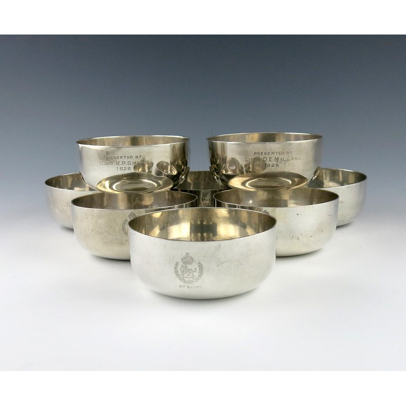 plain circular, each engraved with the badge of the 2nd Battn. Royal Berkshire Regiment and the names of the presenting officers, diameter 10.8cm, approx. weight 54.5oz. (8)
