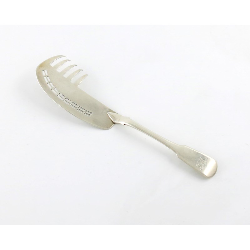 An unusual George IV silver Fiddle pattern fish slice / serving fork