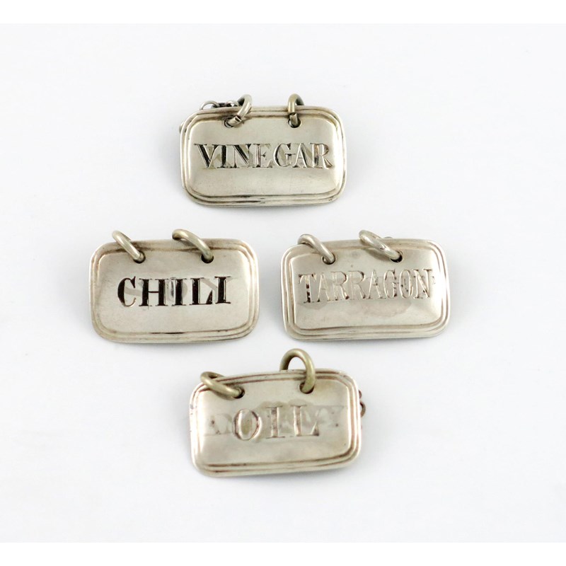 A collection of four antique silver sauce labels