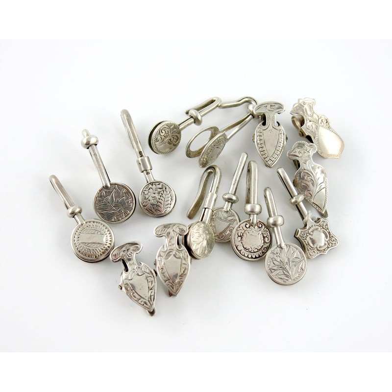 A collection of fifteen silver napkin clips,