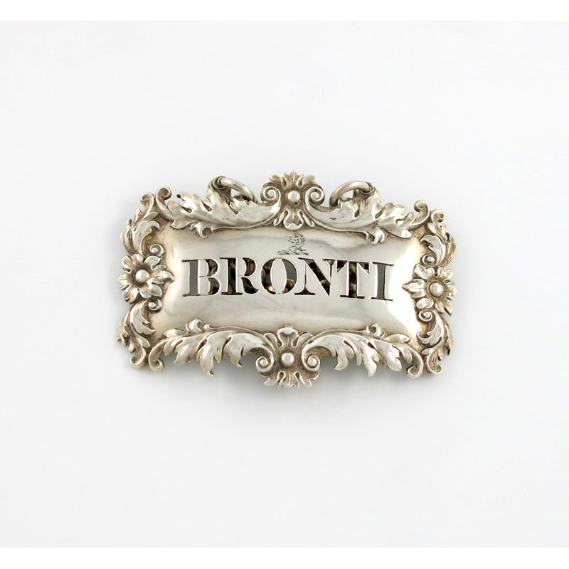 shaped rectangular form, wavy foliate border, engraved with a crest and pierced 'BRONTI', length 5.8cm, approx. weight 0.6oz.